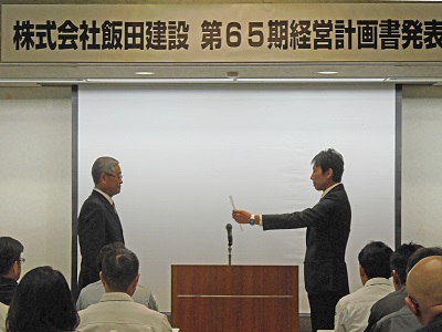 株式会社飯田建設 第65期 経営計画書発表会を開催いたしました。